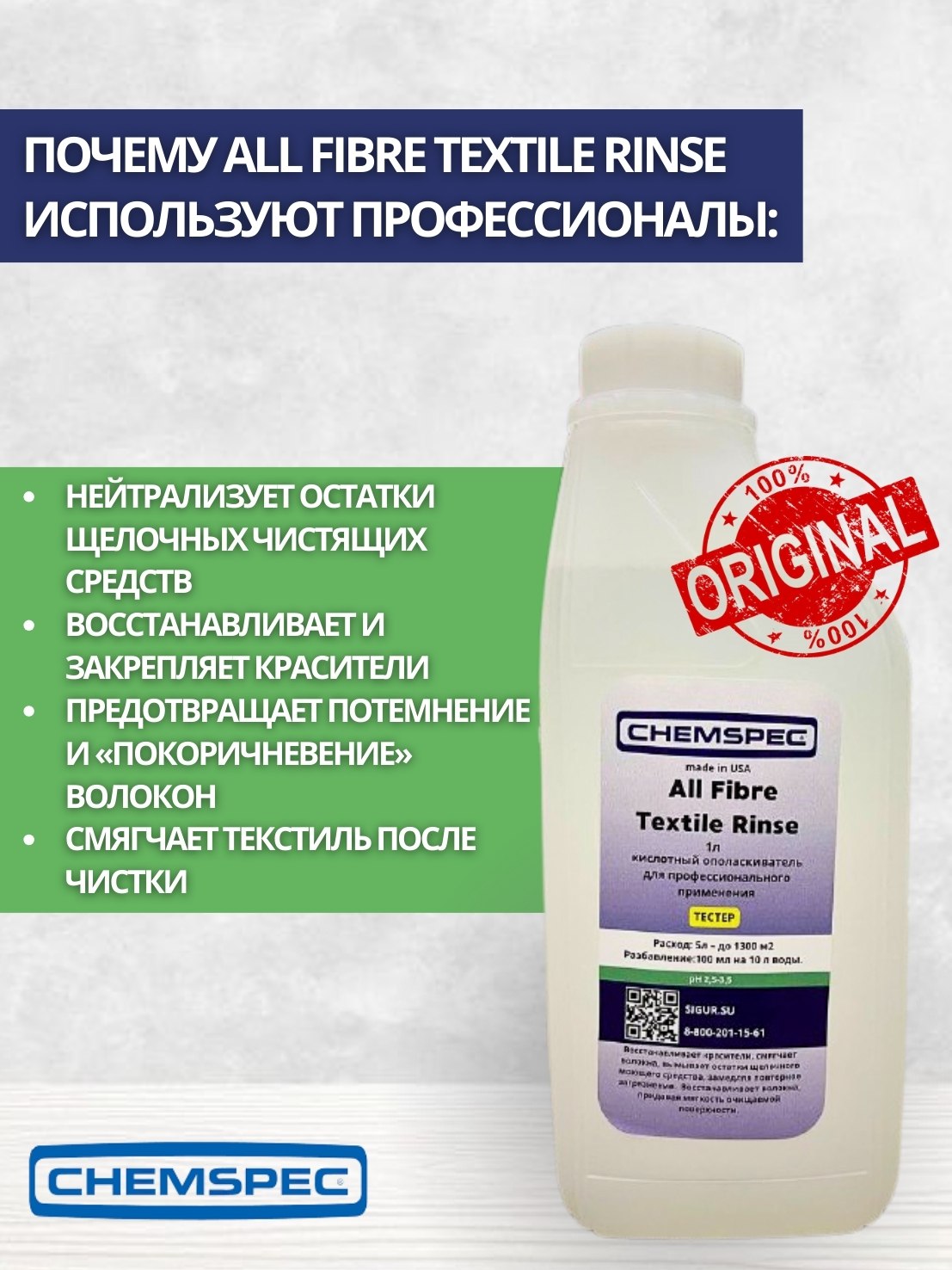 Chemspec: All Fibre Textile Rinse 1л (фасовка) кислотный ополаскиватель